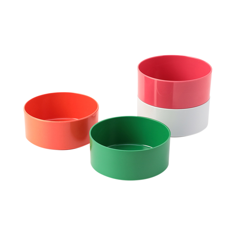 バケットやサラダボウル、スナック入れとしてパーティーでも活躍する多用途なボウルは、スタッキング時に取りやすいよう面取り加工が施されています。素材には軽くて丈夫なメラミンを使用しており、美しい光沢が特徴です。