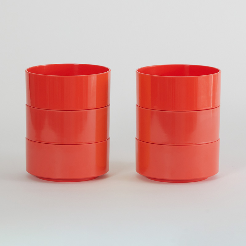 イタリアのグラフィックデザイナー、マッシモ・ヴィネッリがデザインした積み重ね可能なプラスチック製の食器で、1964年にアメリカで発売された際、毎日の生活をより楽しくする遊び心あふれる製品として、瞬く間にヒットしました。
