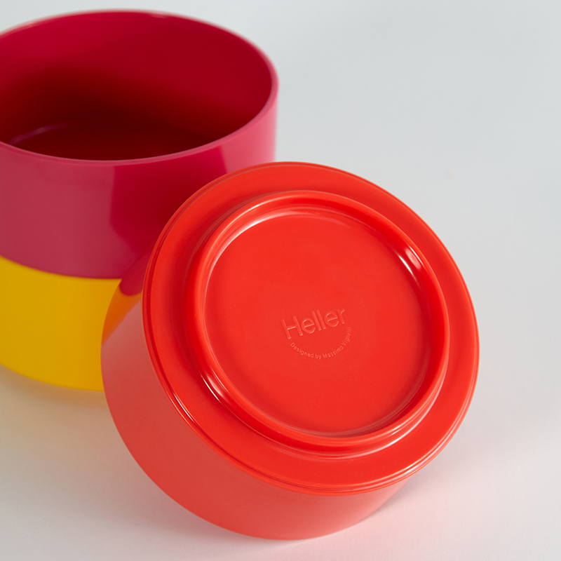 安っぽいとされていたプラスチックの可能性の限界を押し広げ、美しく、機能的で、耐久性に優れた画期的なHeller Dinnerwareは、Compasso d'Oroを受賞し、ニューヨーク近代美術館(MoMA)やメトロポリタン美術館に永久収蔵されています。そして、2024年にリバイブルされました。