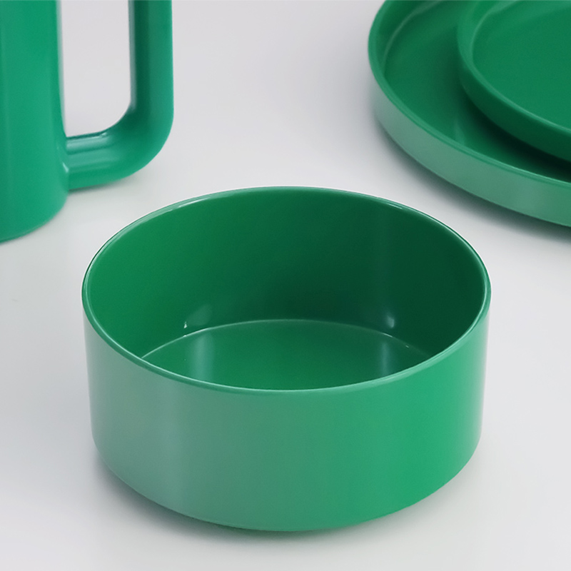 バケットやサラダボウル、スナック入れとしてパーティーでも活躍する多用途なボウルは、スタッキング時に取りやすいよう面取り加工が施されています。素材には軽くて丈夫なメラミンを使用しており、美しい光沢が特徴です。