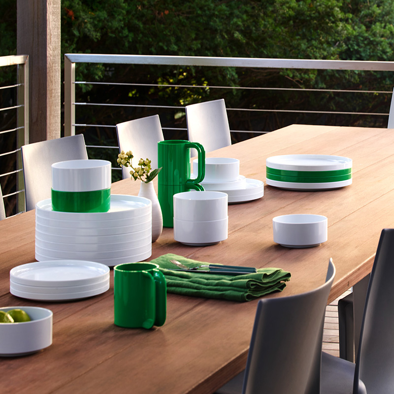 イタリアのグラフィックデザイナー、マッシモ・ヴィネッリがデザインした積み重ね可能なプラスチック製の食器で、1964年にアメリカで発売された際、毎日の生活をより楽しくする遊び心あふれる製品として、瞬く間にヒットしました。
