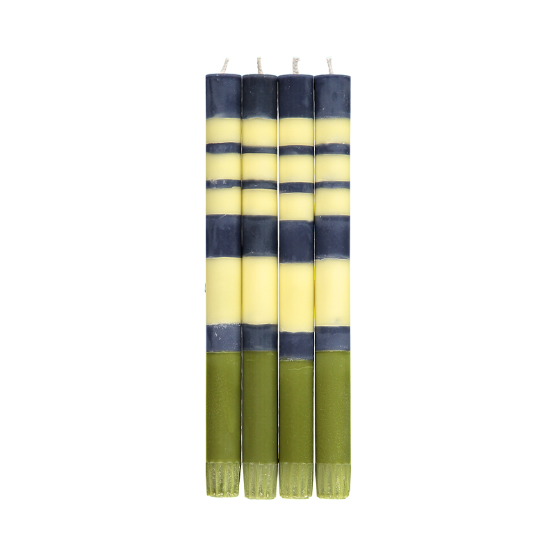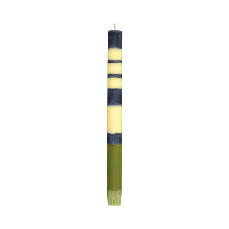 鮮やかなマルチボーダーのテーパーキャンドルは、空間に遊び心を加え、華やかな印象を与えます。
