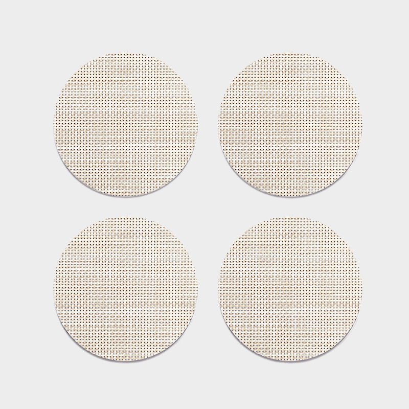 ニューヨークを拠点に活躍するデザイナー Sandy Chilewich(サンディー・チルウィッチ)によるコースターは、塩化ビニルを使用しており飲み物の水滴が繊維に染みこません。