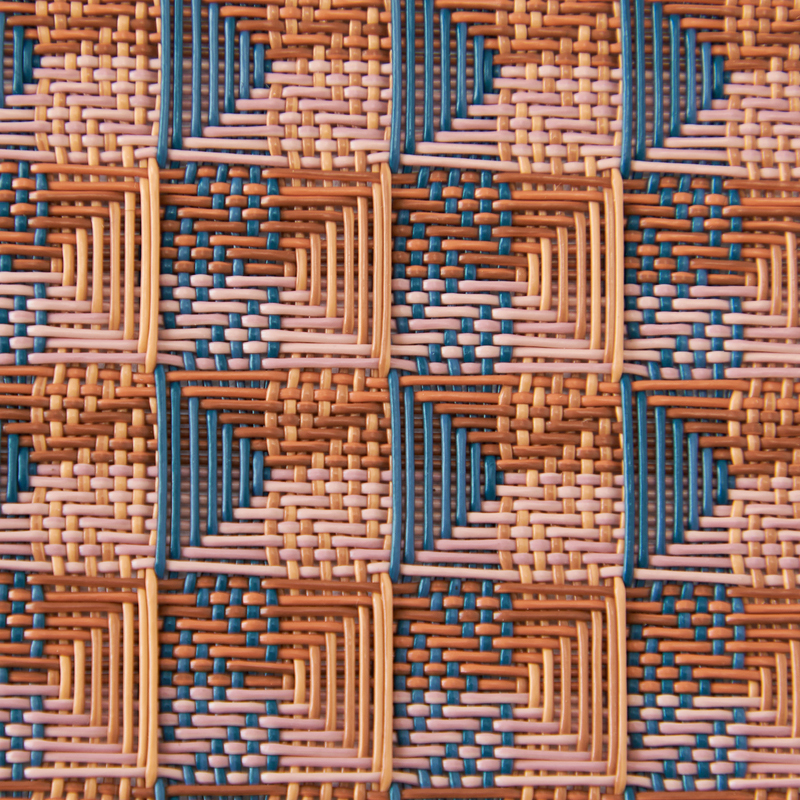1本の糸に複数の色を使う「バイカラー」を駆使し、柄ごとに糸を開発。2000年に世界で初めて、塩化ビニル素材のプレイスマットを開発し、世界中で大きな反響となり、以降、年2回の新コレクションを発表し、デザイン賞を多数受賞しています。