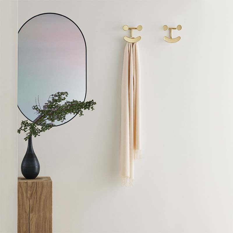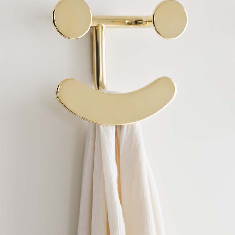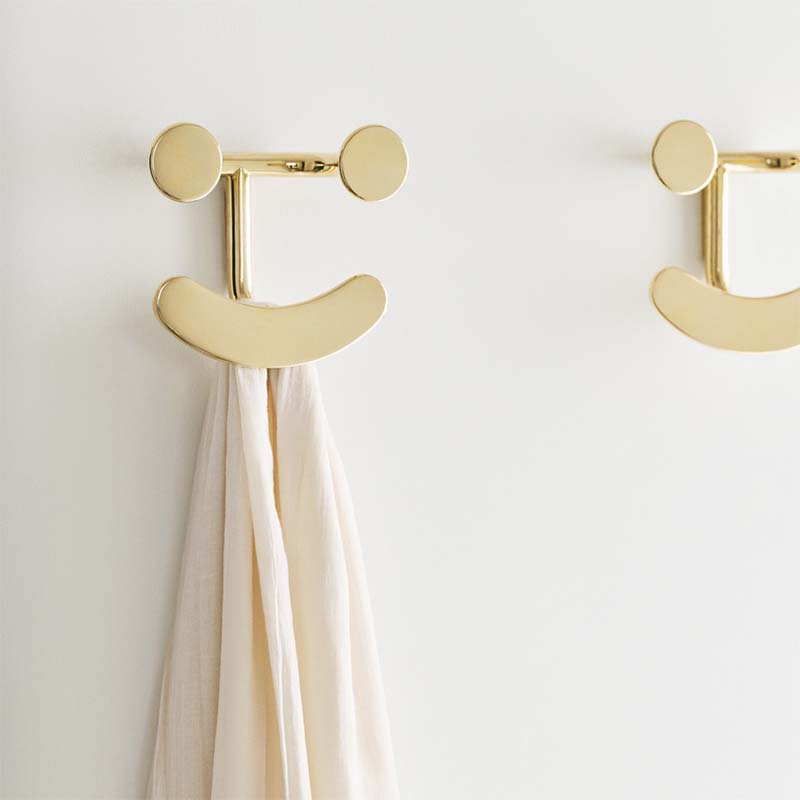 ハッピーフックは、ジャケットや帽子、キッチンエプロンなど、好きなものを掛けられる楽しいデザインのフックです。そのスマイルで室内のムードを明るくし、フックとしての役割を果たします。