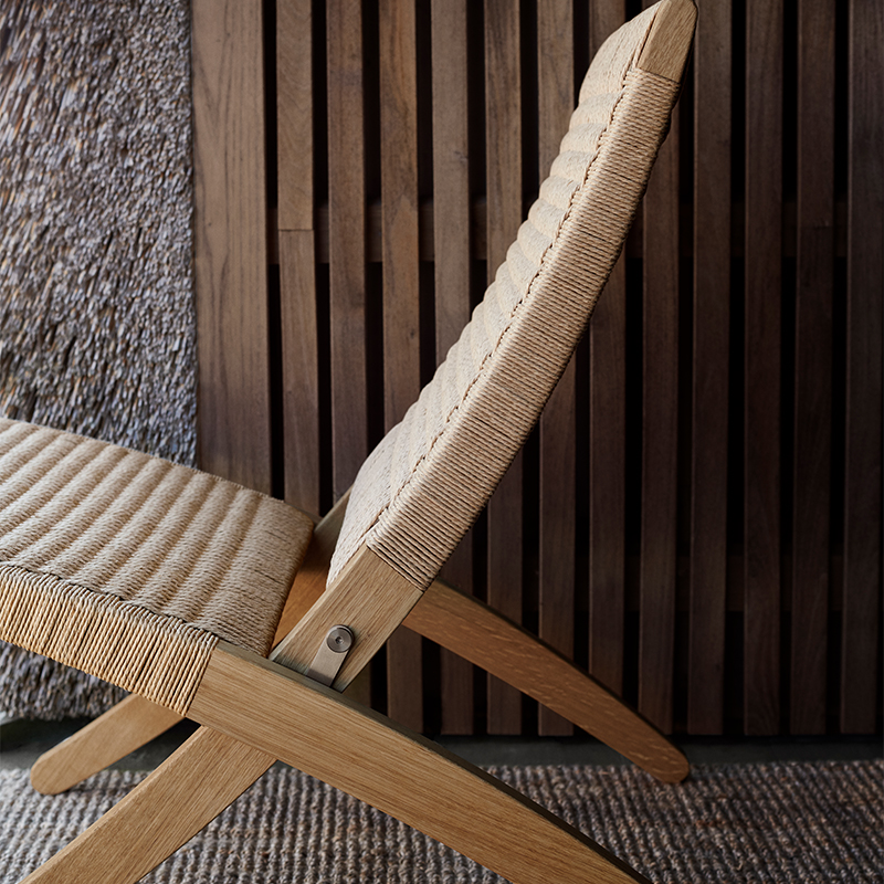 1997年にモーテン・グッドラーによってデザインされたMG501 CUBA CHAIR(キューバチェア)は、フォルムの美しさと機能性を追求したモダンデザインの典型です。折りたたみ式椅子の伝統を受け継いだ先代デザイナーたちの影響が色濃く反映されています。