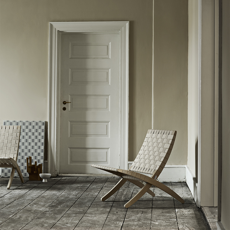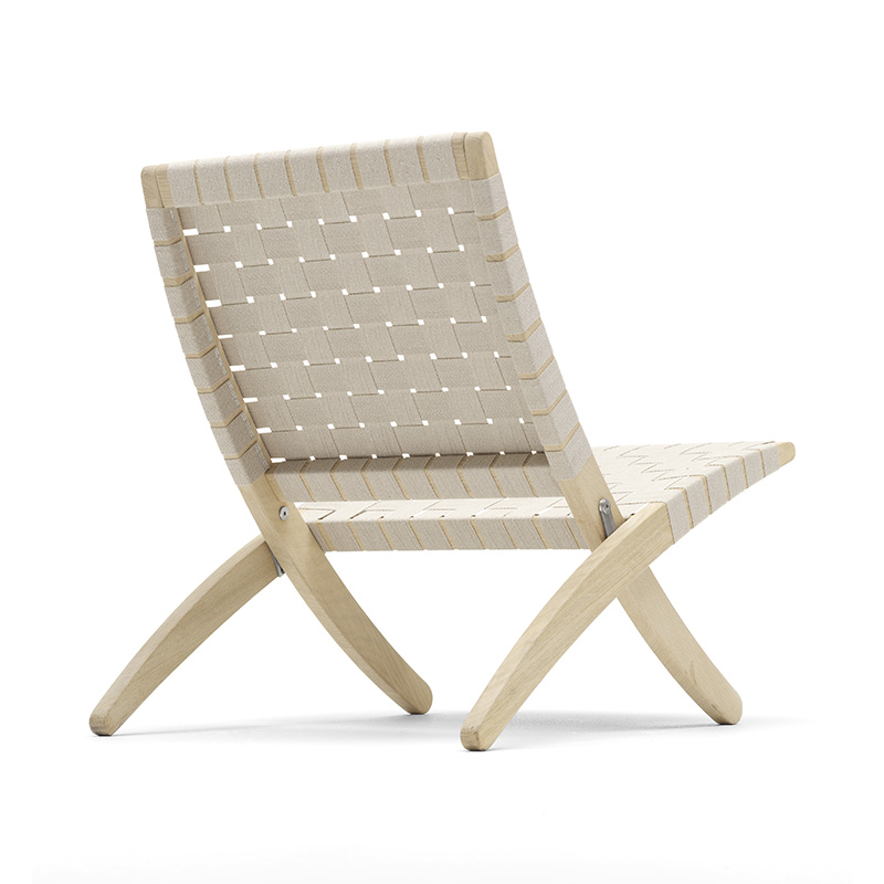 MG501 キューバチェアは、モーテン・グッドラーによる1997年のデザイン。フォルムの美しさと機能性を追求したモダンデザインの典型です。折りたたみ式の椅子を追求してきた先代デザイナーたちの影響が色濃いデザインと言えます。MG501キューバチェアはしっかりとしたオーク材のフレームが特徴で、フレームの周りには体の輪郭に優しく沿うようにサポートする快適なシートで構成されています。