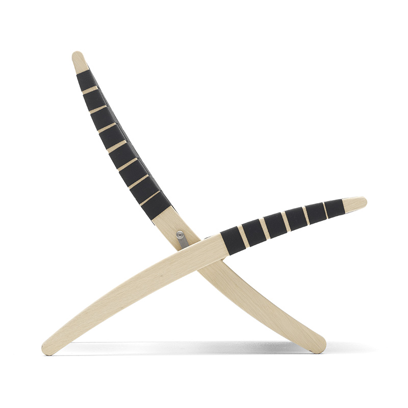 MG501 キューバチェアは、モーテン・グッドラーによる1997年のデザイン。フォルムの美しさと機能性を追求したモダンデザインの典型です。折りたたみ式の椅子を追求してきた先代デザイナーたちの影響が色濃いデザインと言えます。MG501キューバチェアはしっかりとしたオーク材のフレームが特徴で、フレームの周りには体の輪郭に優しく沿うようにサポートする快適なシートで構成されています。