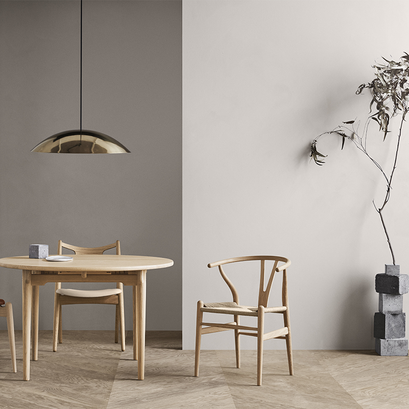 Yチェアの発端は中国の椅子に座るデンマーク商人の肖像画。商人が座る明代の椅子がデザインの起源となっています。素晴らしい使用感と使い勝手、そして特徴的なラインを描く美しいフォルム。椅子に求められる機能性と見た目の美しさを同時に満たす椅子、と多くの人が評価するCH24、Yチェア。まさに、デニッシュモダンの真髄と言えます。