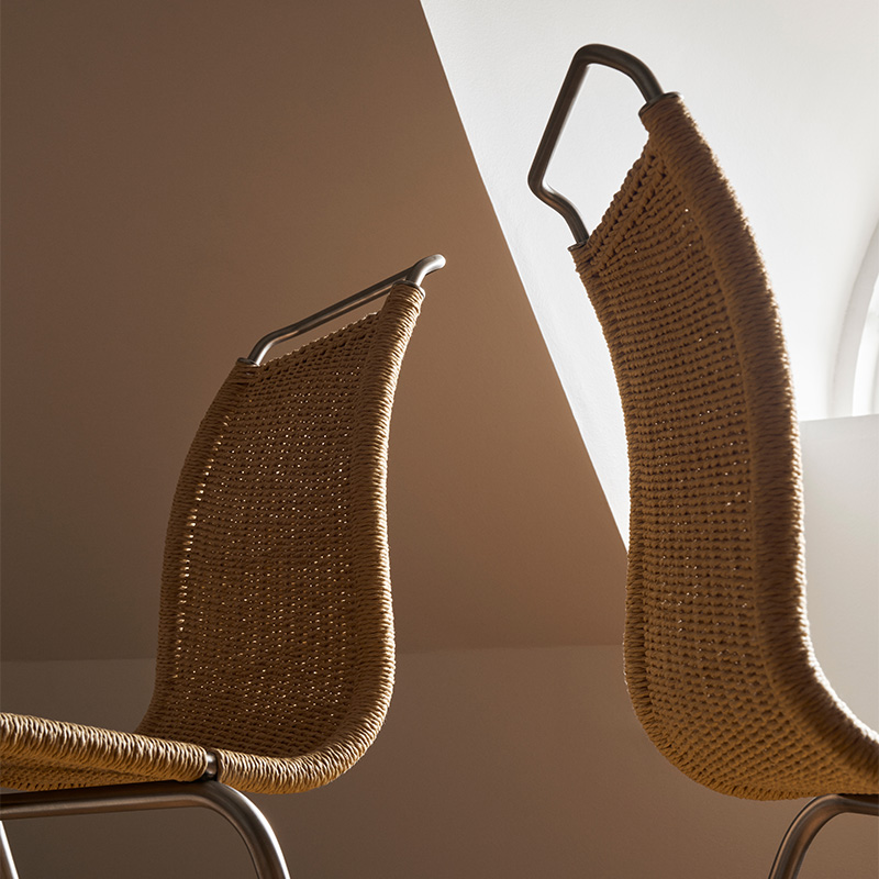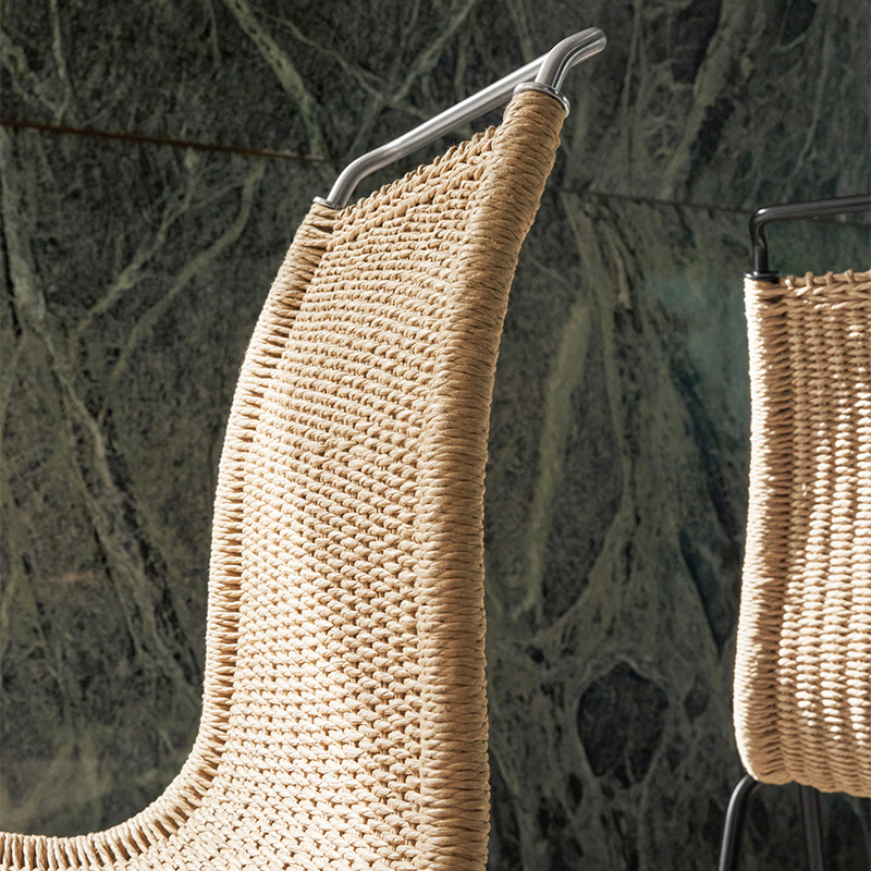 職人による手織りには15時間もの時間を要し、工業用スチールとペーパーコードの組み合わせによって軽量かつ優雅な印象を与えます。