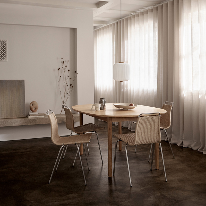 PK1ダイニングチェアは、ケアホルムのデザイン哲学を美しく反映しています。