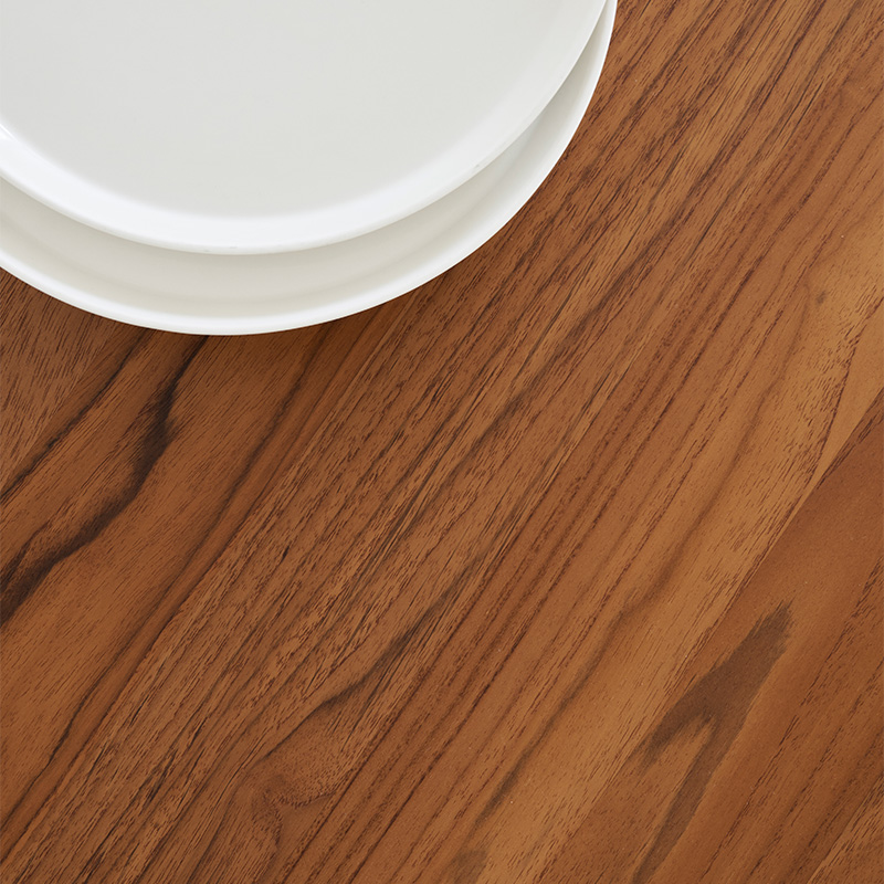 天板は無垢の広葉樹材。テーブルの長さに合わせて木取りした材を使用していることから、木目がより美しく見え、全体的にバランスの取れた印象となっています。