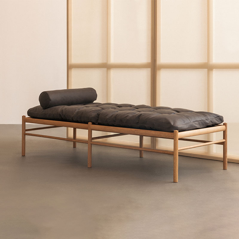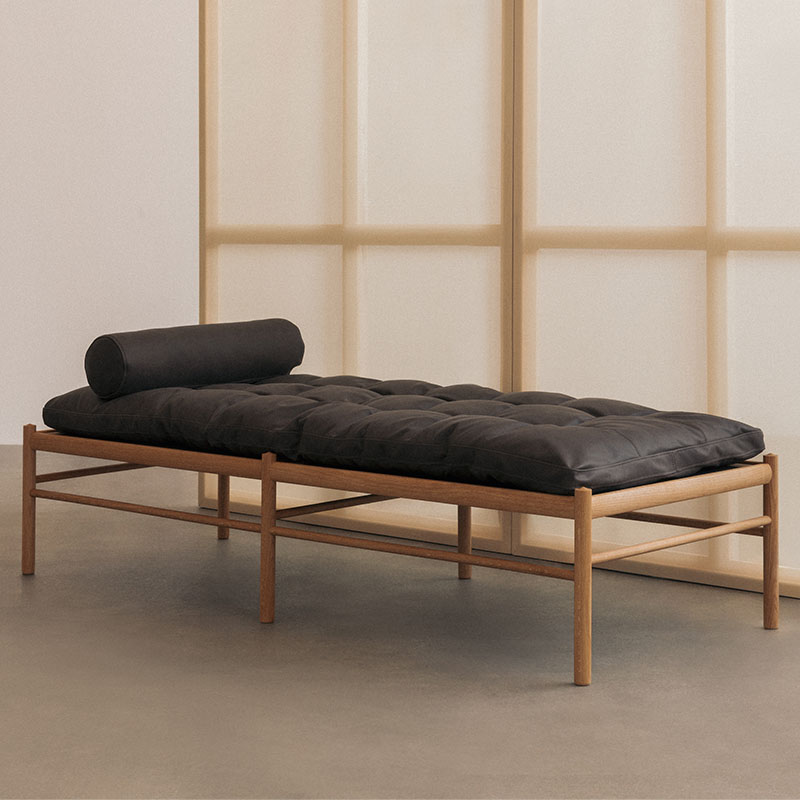 オーレ・ヴァンシャーの代表作のひとつで、オーク無垢材のフレームに美しく横たわる長いクッションが特徴です。