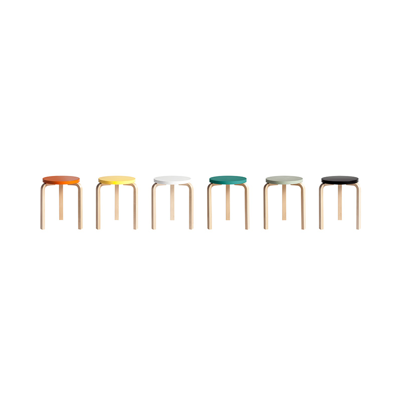 アルヴァ・アアルトにより1933年にデザインされたスツール 60は、座面と三本の脚という最小限の要素で形作られています。