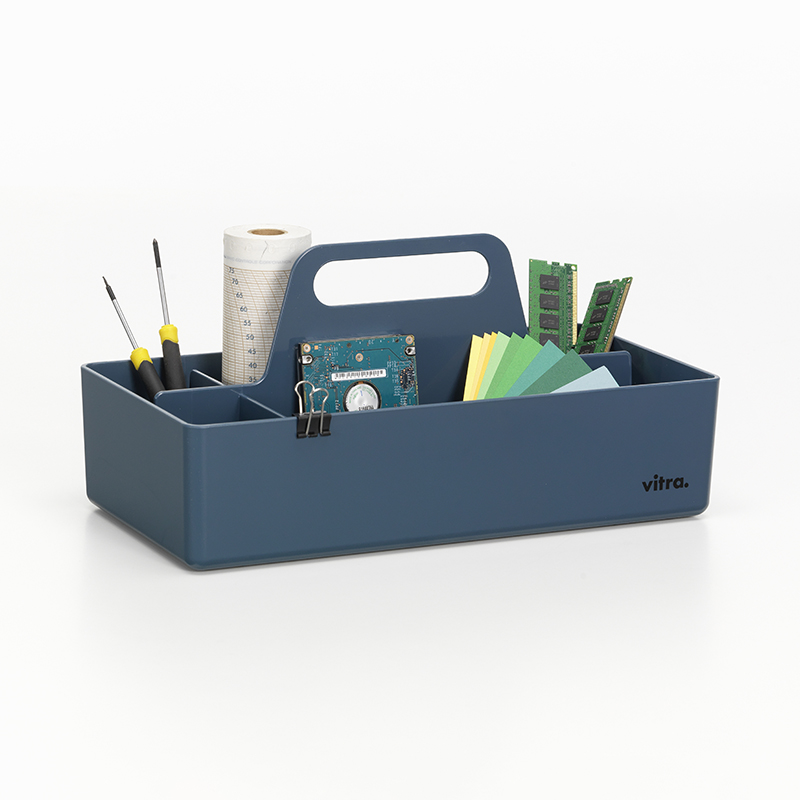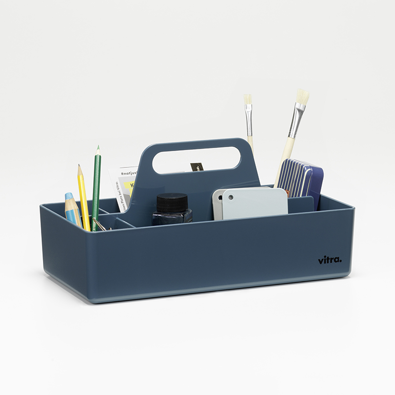アリク・レヴィがデザインしたツールボックスは、デスク周りの文房具やリビング周りの小物をすっきりと整理できる、実用的なアイテムです。ハンドル付きでコンパクトなデザインは、簡単に必要な場所へ持ち運ぶことができます。家庭廃棄物から生成された再生プラスチックを用い、100%リサイクル可能です。