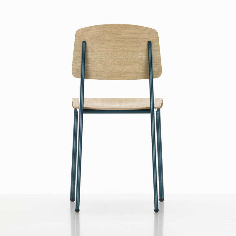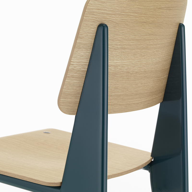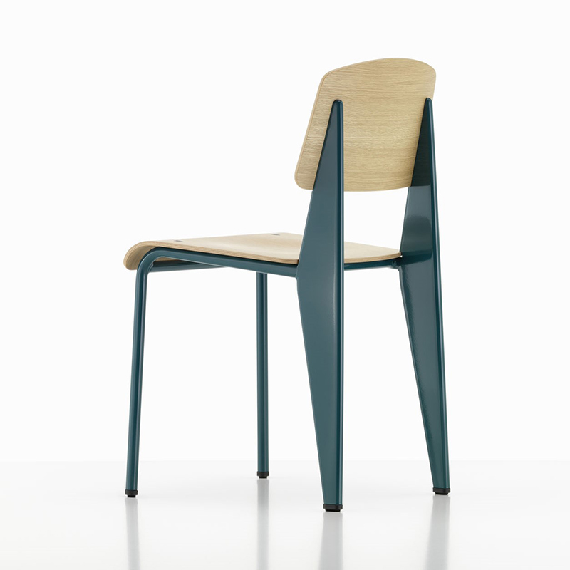 フランスのデザイナーであり建築家、そしてエンジニアでもあったジャン・プルーヴェは、椅子に座った時、後脚に最も負担がかかるという椅子の本質を見抜き、スタンダードチェアのデザインに生かしました。