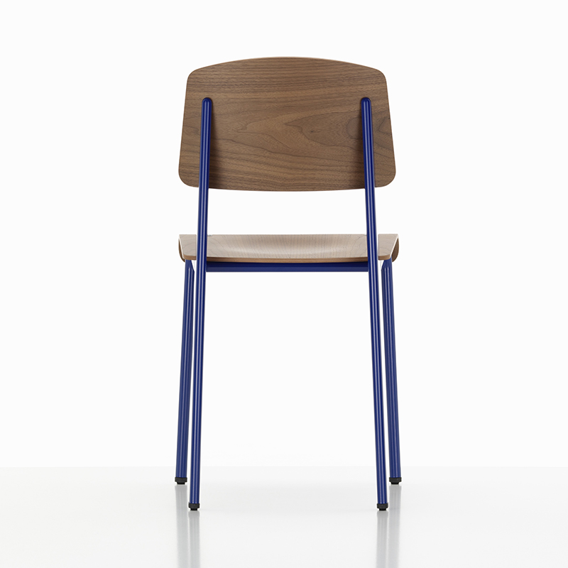フランスのデザイナーであり建築家、そしてエンジニアでもあったジャン・プルーヴェは、椅子に座った時、後脚に最も負担がかかるという椅子の本質を見抜き、スタンダードチェアのデザインに生かしました。