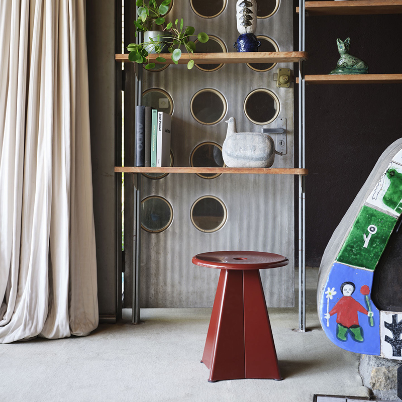 ジャン・プルーヴェがデザインした金属製のスツール「タブレ メタリーク」は、サン=モーリスの教育施のために作られました。