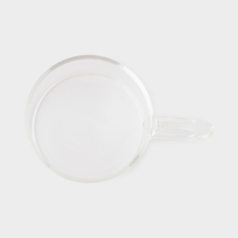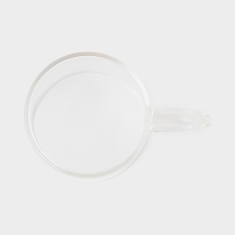 クリアガラスのコーヒーカップ。シンプルさが際立つ、飽きの来ないデザインです。
