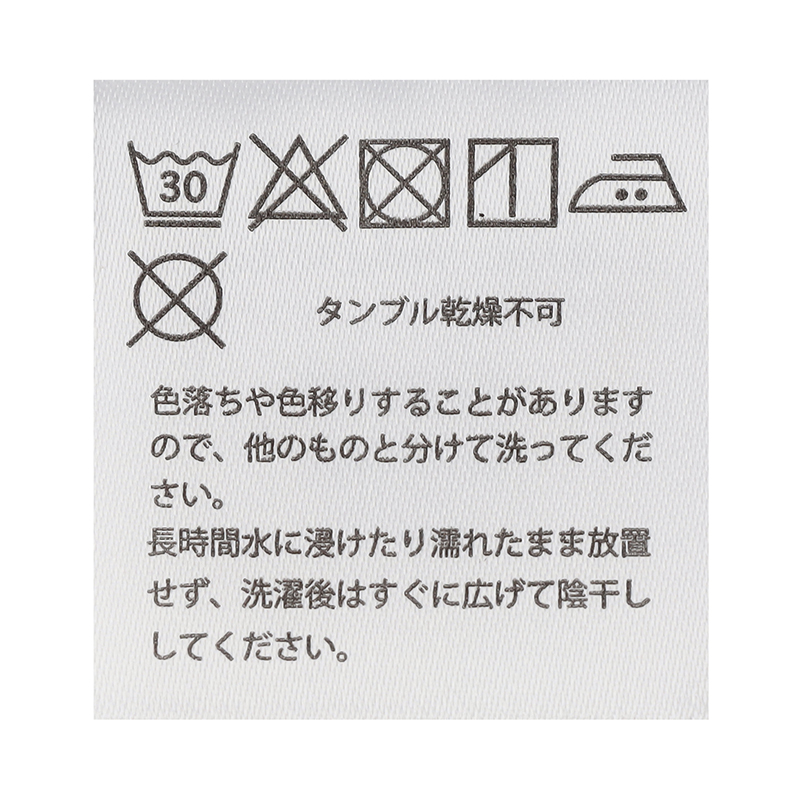 ・長時間水に付けたり濡れたまま放置せず、洗濯後はすぐに脱水し、広げて陰干ししてください。