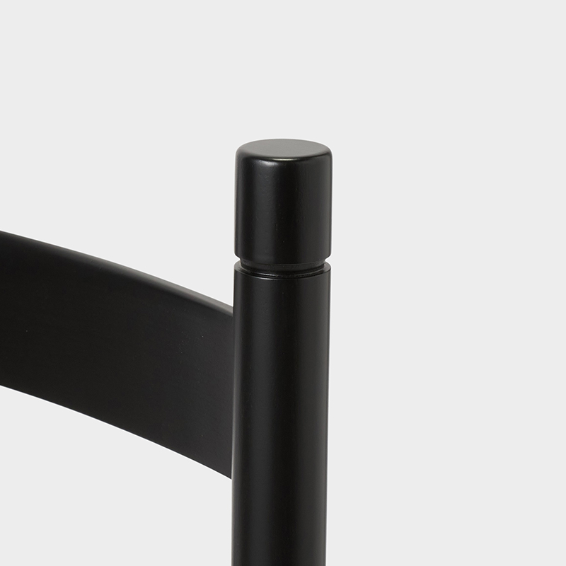 背もたれのデザインやカーブの反りにも工夫が施されており、体全体をしっかり支える設計になっています。背柱の先端はチェア全体のバランスを考慮し、何度も調整されており、堀の深さや角度、触感までにこだわってデザインされています。