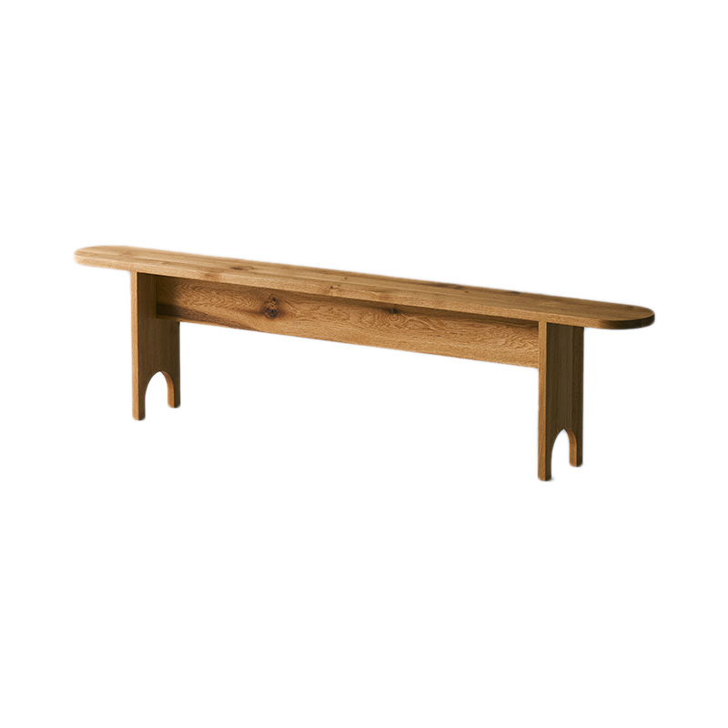 座る以外にも植物やインテリア小物を飾ったりできるよう、多用途な長さにこだわりました。奥行きは狭く設計されていますが、ダイニングテーブルにも合う高さのベンチです。