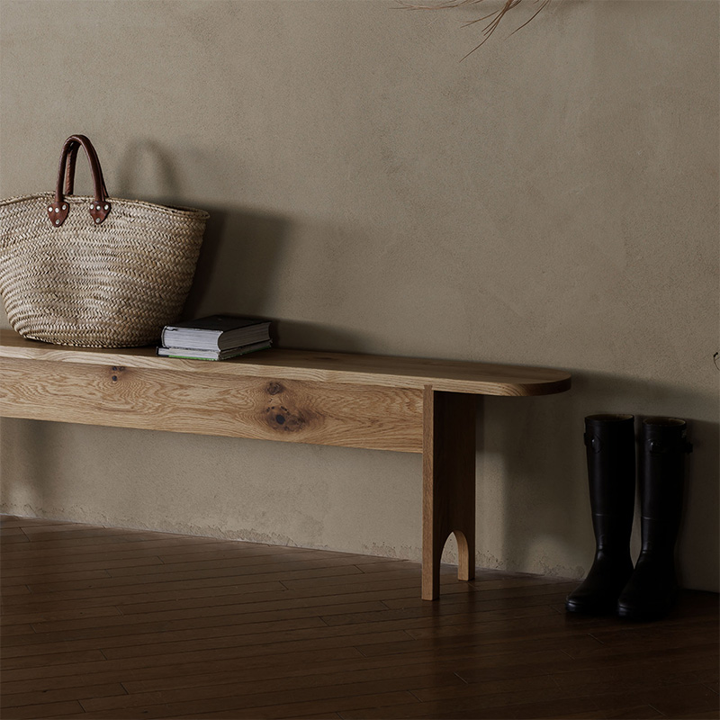 アン シェーカーベンチは、スリムなデザインのため、廊下や玄関などの限られたスペースにも場所を取らずに置くことができます。