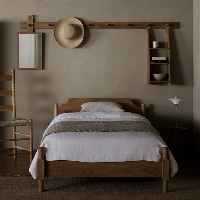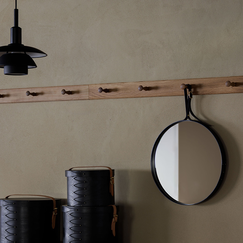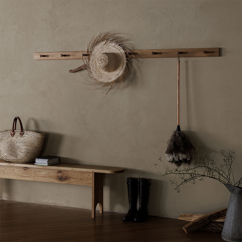ANN SHAKER シリーズは、シェーカー家具ならではの直線的で簡素なフォルムを大切にし、現代の多様な暮らしにも調和するシンプルでミニマルな形状と機能的なデザインが特徴です。アン シェーカーペグレールは、同シリーズのハンギング製品や衣類を簡単に掛けられる、シンプルで機能的なレールです。