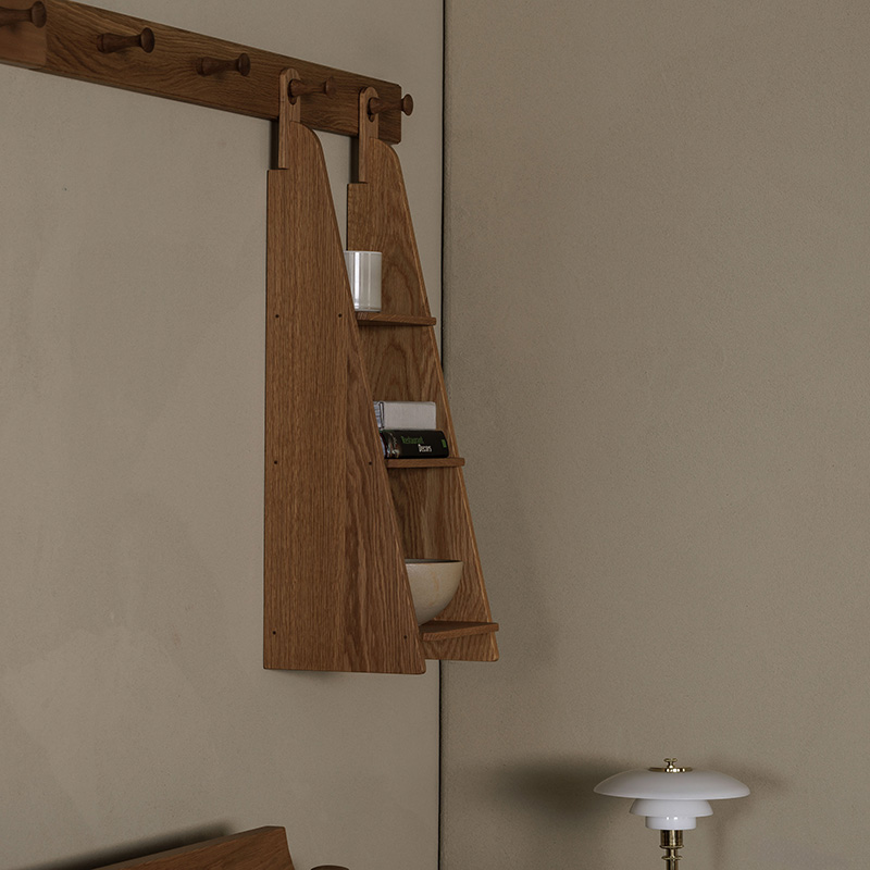 アン シェーカー ハンギング シェルフは、ペグレールに簡単に装着できるハンギングシェルフです。