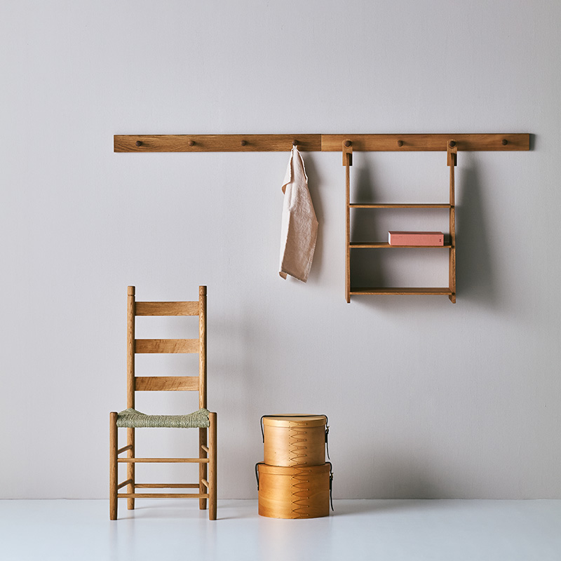 ANN SHAKER シリーズは、シェーカー家具ならではの直線的で簡素なフォルムを大切にし、現代の多様な暮らしにも調和するシンプルでミニマルな形状と機能的なデザインが特徴です。アン シェーカー ハンギング シェルフは、ペグレールに簡単に装着できるハンギングシェルフです。