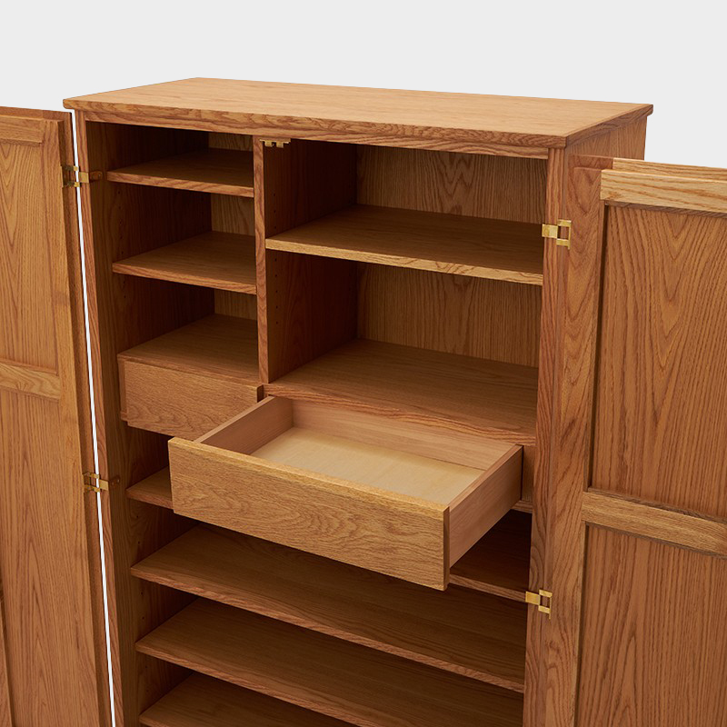 アン シェーカーキャビネットは、扉から背面まで同じ素材の木材で覆われ、どの角度から見ても美しい佇まいが特徴です。