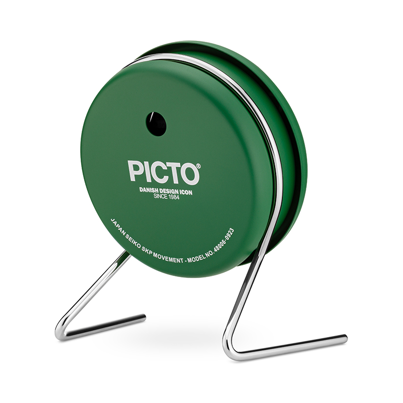 PICTOは「絵文字」「絵単語」を意味する単語「Pictgram」に由来し、一つの点と一本の線で時間を表示する、1984年に発売された世界初の回転ダイヤル式時計です。