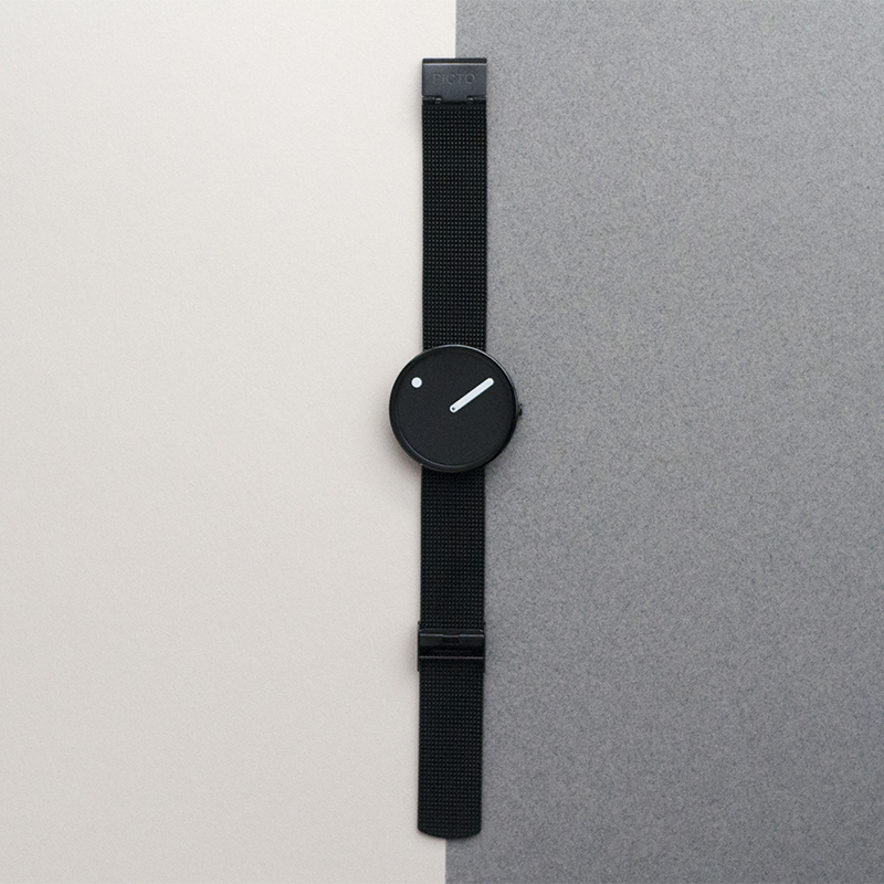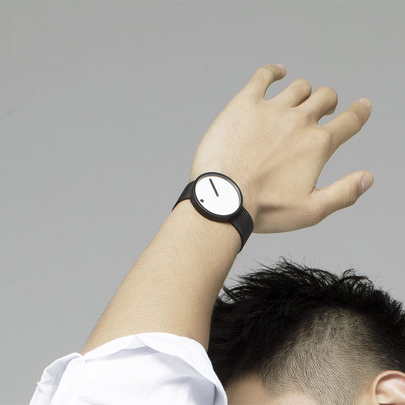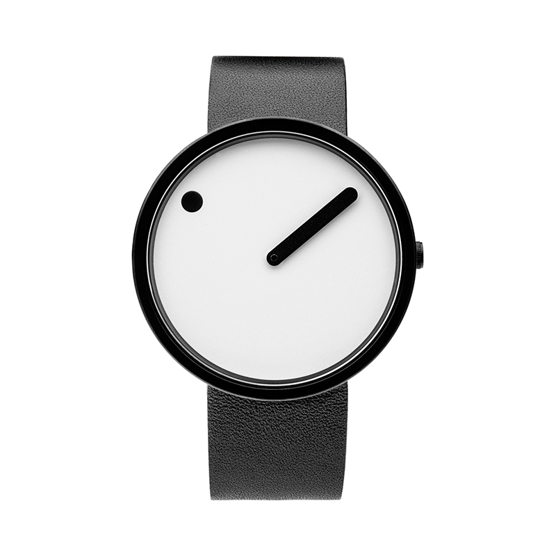 デザイナーであるスティーン・ゲオルグ・クリステンセンとアーリング・アンデルセンはこれらのことをデザインの根幹におき、時間を「絵」で表現しようと試みました。そこからダイアル上に時間を表すドットが描かれたこのデザインは生み出され、点と線による革新的でいながら最もシンプルな製品が創り上げられたのです。「ピクト」というブランド名には、2つの意味が込められています。