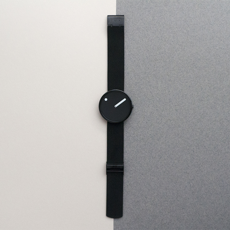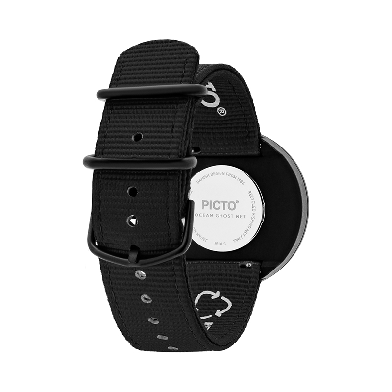 デザイナーであるスティーン・ゲオルグ・クリステンセンとアーリング・アンデルセンはこれらのことをデザインの根幹におき、時間を「絵」で表現しようと試みました。そこからダイアル上に時間を表すドットが描かれたこのデザインは生み出され、点と線による革新的でいながら最もシンプルな製品が創り上げられたのです。PICTOR オーシャン・ゴースト・ネット・ウォッチコレクションの時計ケースは、海から回収した漁網を再利用し、ナイロンプラスチックのペレットに再加工して作られています。