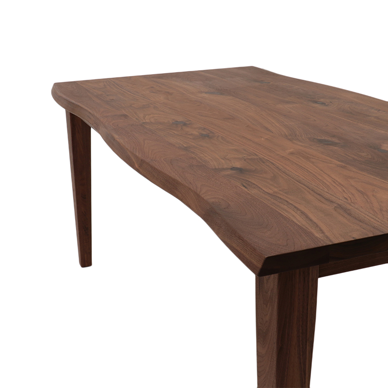 A-TYPEのテーパードストレートレッグはシンプルな見た目で椅子の収まりもよいデザインで、ライブエッジの天板はよりナチュラルな雰囲気を作りだします。