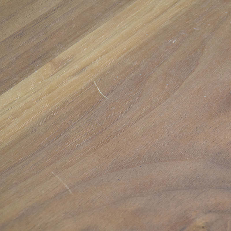 天板側面(短辺)縦に3cm程キズ・削れあり。天板上に複数細かい線キズ多数あり。