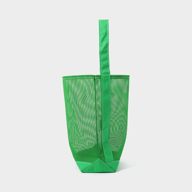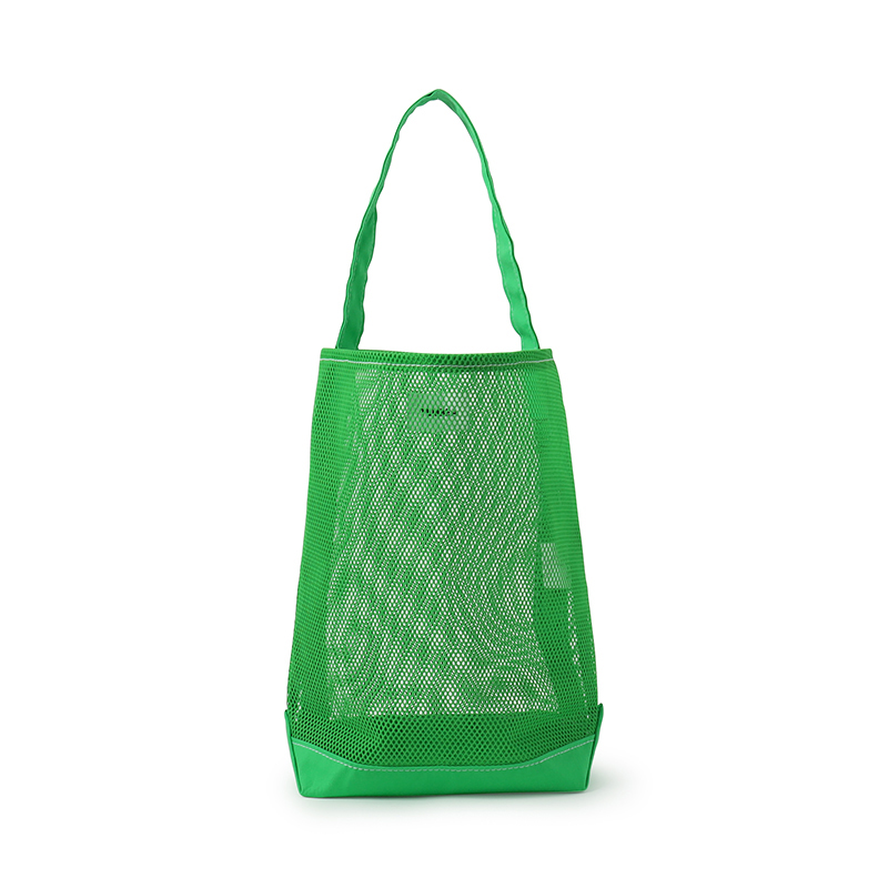 日常に馴染む道具としてのプロダクトを作り続けている。メッシュ素材を使ったバゲットトート。 持ち手を手前に付けているため、 バゲットなどの長い物を入れても肩に掛けやすい作りが特長です。 16インチのPCがぴったり入るサイズ。