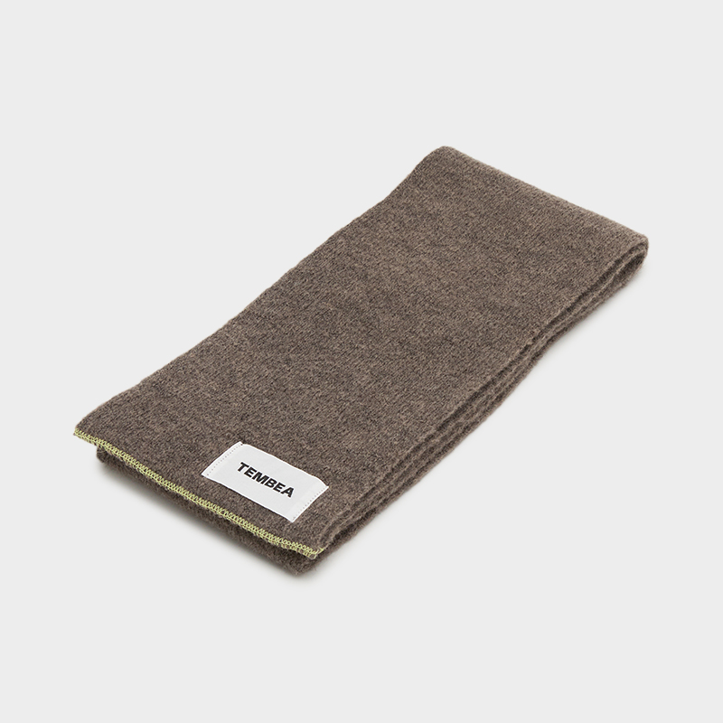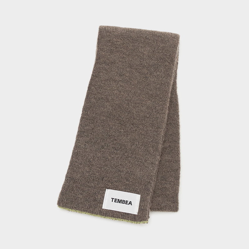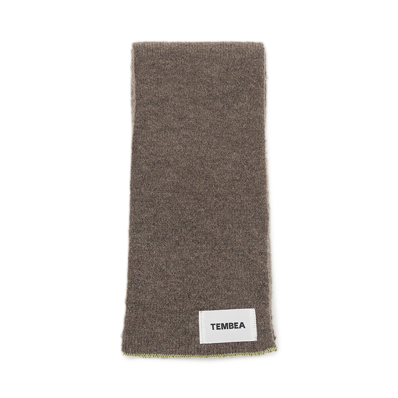 例えば、バゲット、本、おもちゃを入れるためのもの。新聞、教科書、野菜を運ぶためのもの。入れる物や用途が決まっているバッグを提案している。バッグはキャンバス生地を使用し、その無機質さ、素朴さ、デザイン性を意識した物作りを目指す。使い込むほどにやわらかい表情へ変化し、使う人の体になじんでいくことも特長。バッグは基本、仕切りもポケットもない。物を決められた場所に収める便利さではなく、なにも決めつけない“自由な使い勝手、自由の心地よさ”をスタイルとしている。TEMBEAとは「放浪」という意味。持つことによりどこかに行きたくなる。場所も時代も選ばず、普遍的な美を追求する道具としてのバッグ作りを続けている。ウール素材と色使いにこだわったMUFFLER(マフラー)。