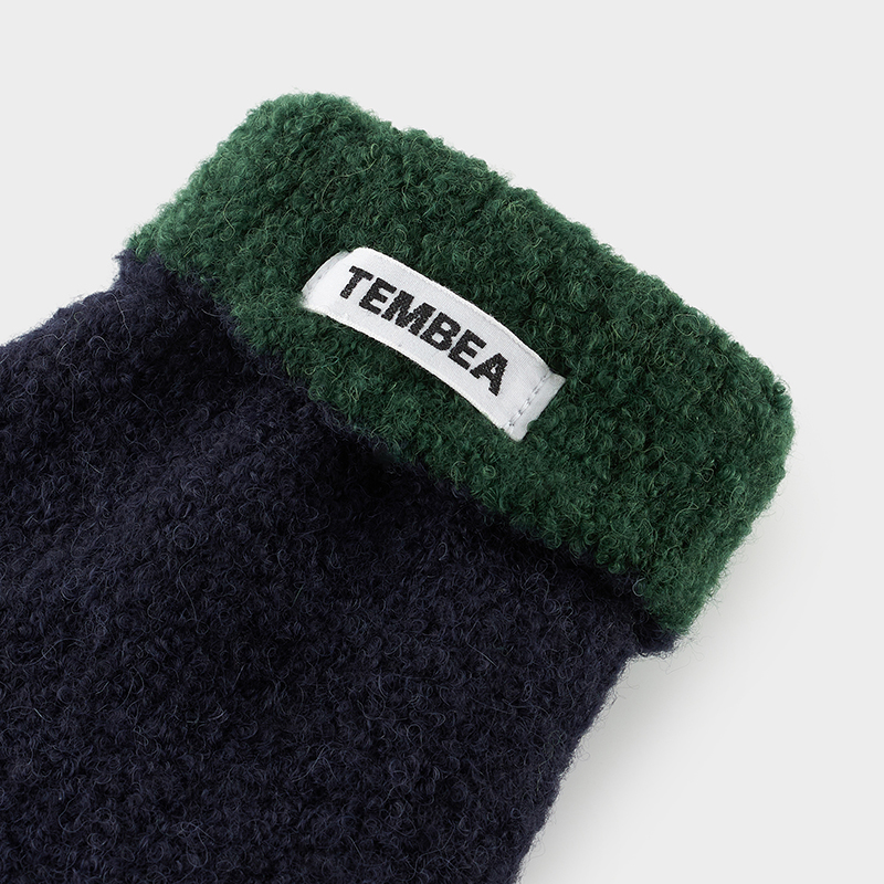 例えば、バゲット、本、おもちゃを入れるためのもの。新聞、教科書、野菜を運ぶためのもの。入れる物や用途が決まっているバッグを提案している。バッグはキャンバス生地を使用し、その無機質さ、素朴さ、デザイン性を意識した物作りを目指す。使い込むほどにやわらかい表情へ変化し、使う人の体になじんでいくことも特長。バッグは基本、仕切りもポケットもない。物を決められた場所に収める便利さではなく、なにも決めつけない“自由な使い勝手、自由の心地よさ”をスタイルとしている。TEMBEAとは「放浪」という意味。持つことによりどこかに行きたくなる。場所も時代も選ばず、普遍的な美を追求する道具としてのバッグ作りを続けている。高い保温性をもったアルパカ素材を使った新作のBIG MITTEN(ビッグミトン)。
