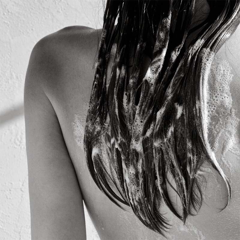ステップ2:泡立てたバーを濡れた髪に滑らせます。シャンプーバーの特徴である勾玉の形状を利用して、頭皮と首のリンパツボをマッサージします。