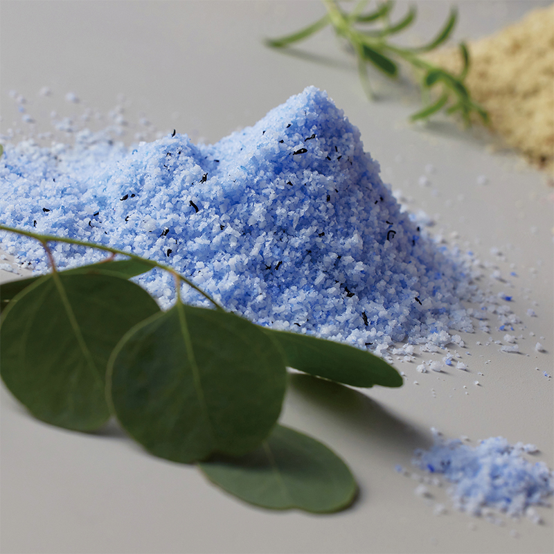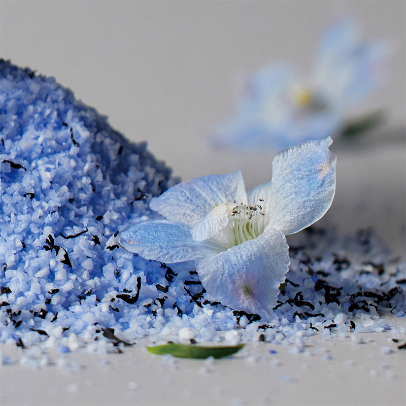 ミネラル成分が豊富な韓国・全羅南道の飛禽島(ピグムド)の天日塩をベースに、天然アロマオイル、肌の保湿力を高める栄養成分を多く含んだエッセンシャルオイル、お肌に優しいハーブが豊富に含まれたウェルネスバスソルト。
