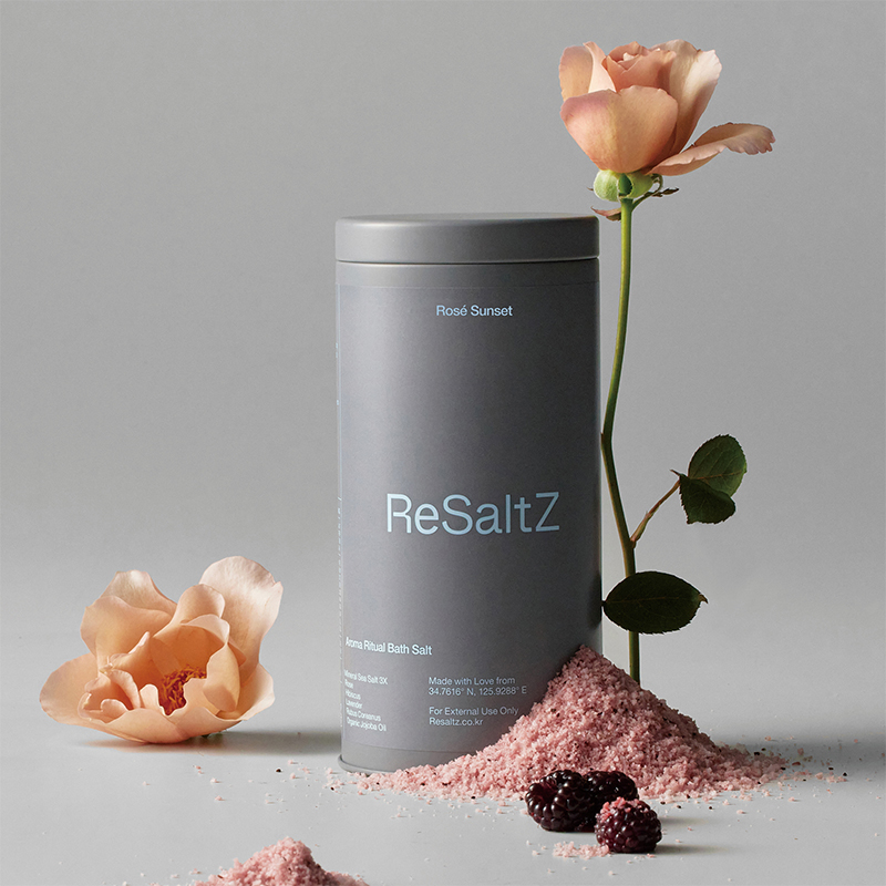 ReSaltZとは、Re(回復)、Salt(生命の礎)、Z(未知数)を意味する言葉で、体にやさしい自然素材を通じて、体本来の回復を表現し、バランスの取れた生活と健康的な美を支えるプロダクトを提案しています。ミネラル成分が豊富な韓国・全羅南道の飛禽島(ピグムド)の天日塩をベースに、天然アロマオイル、肌の保湿力を高める栄養成分を多く含んだエッセンシャルオイル、お肌に優しいハーブが豊富に含まれたウェルネスバスソルト。