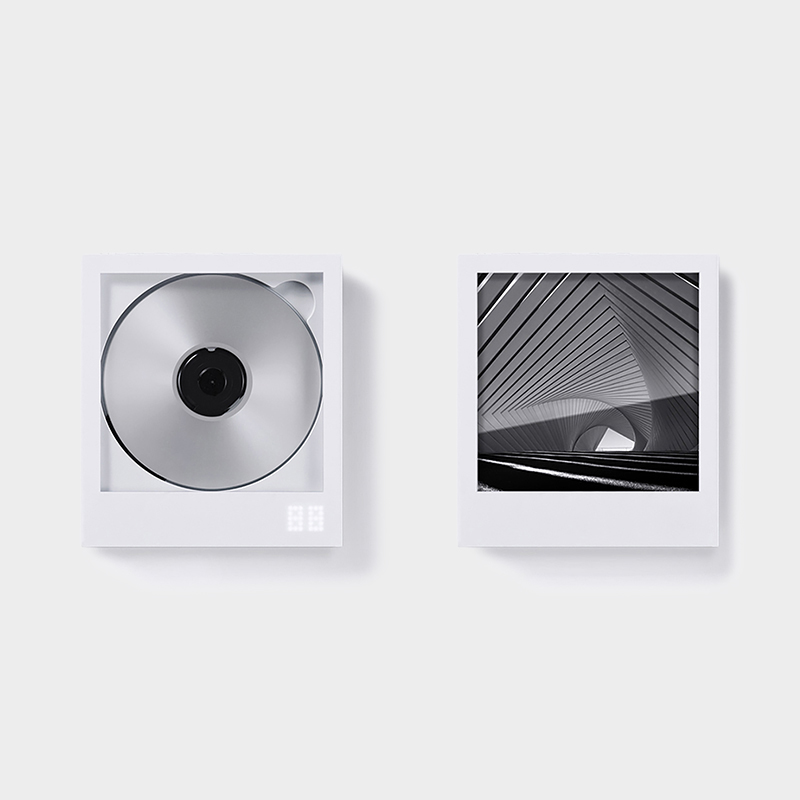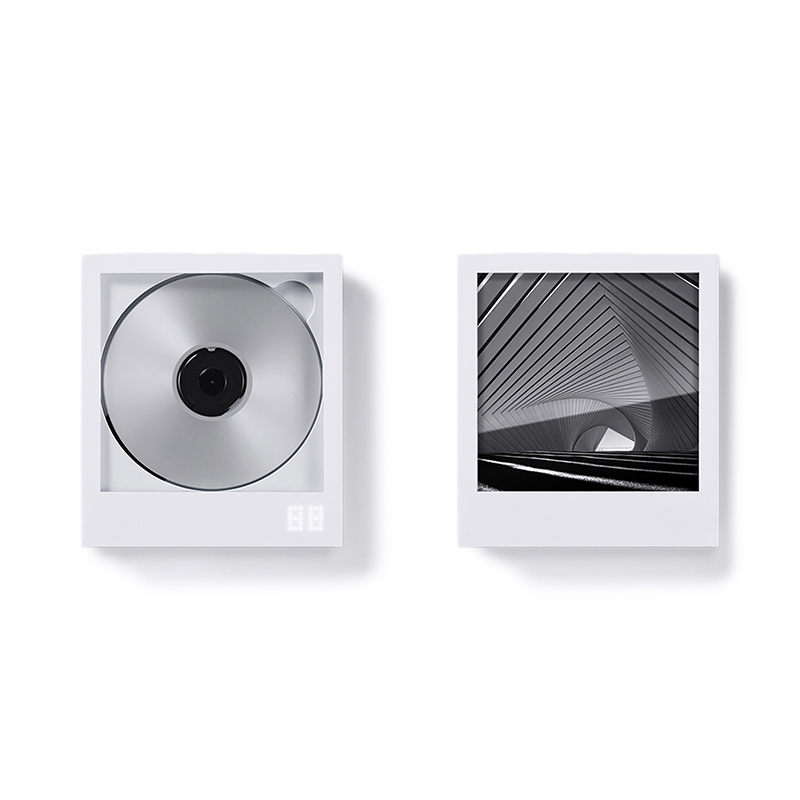 本体はインスタントフォトフレームを思わせる造形で、ジャケットを差し込むと写真やアートピースのように空間に溶け込み音楽を飾ることができます。