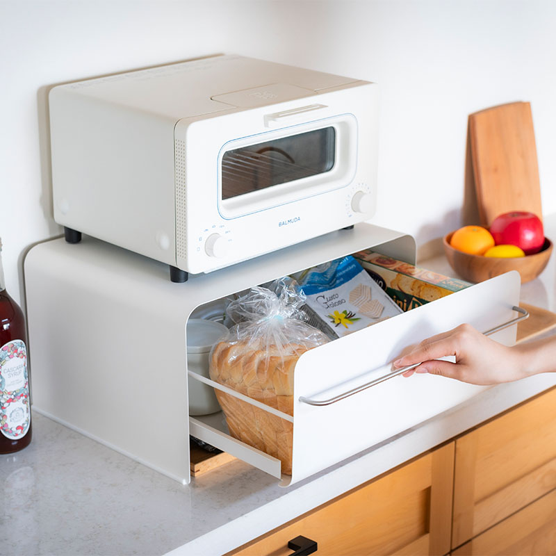 食パンやコーヒー瓶やお菓子など、いろんなものをスッキリ収納できます。