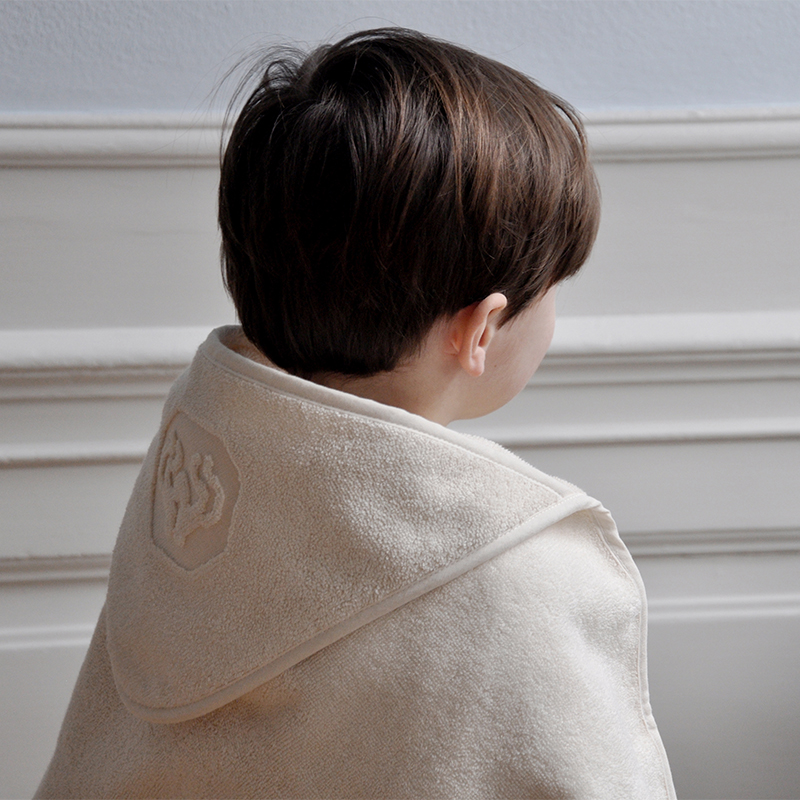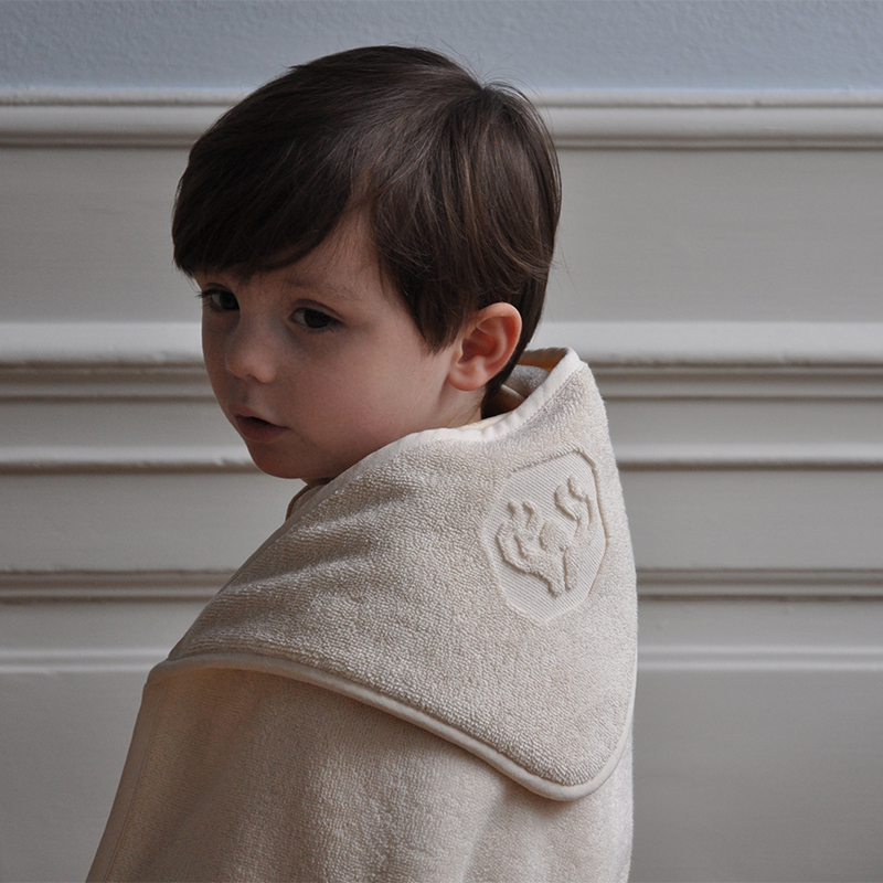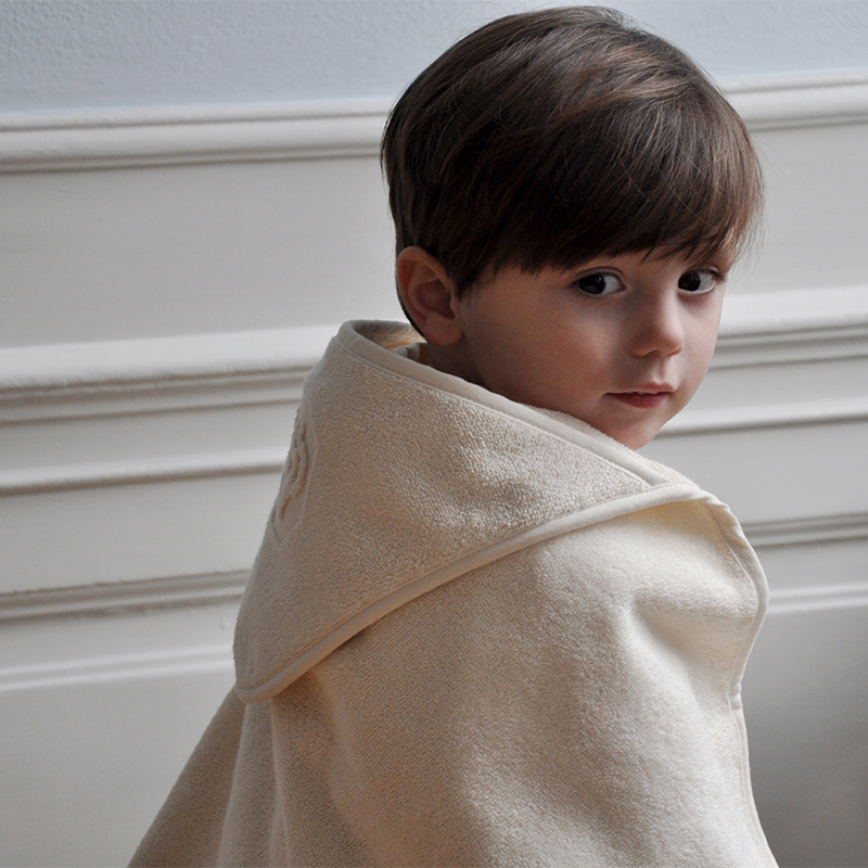 オーガニックコットンのテリー生地が、お風呂上がりの子どもを日常の贅沢で包み込みます。