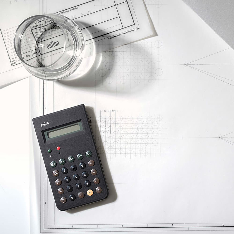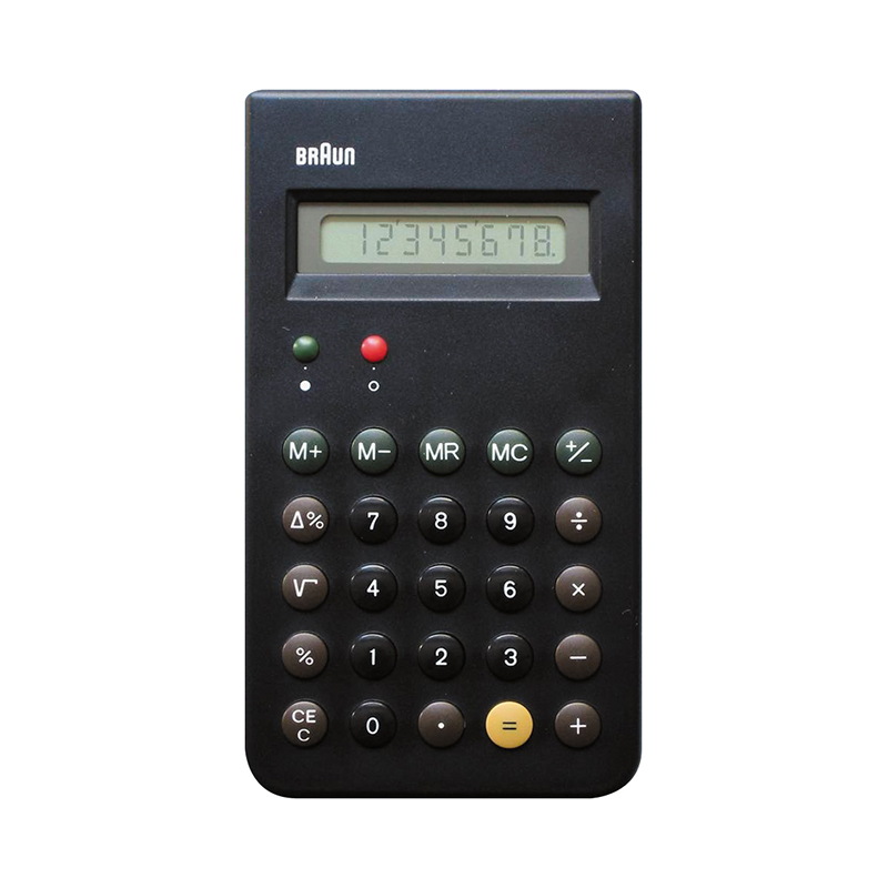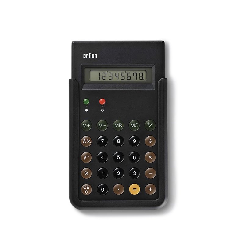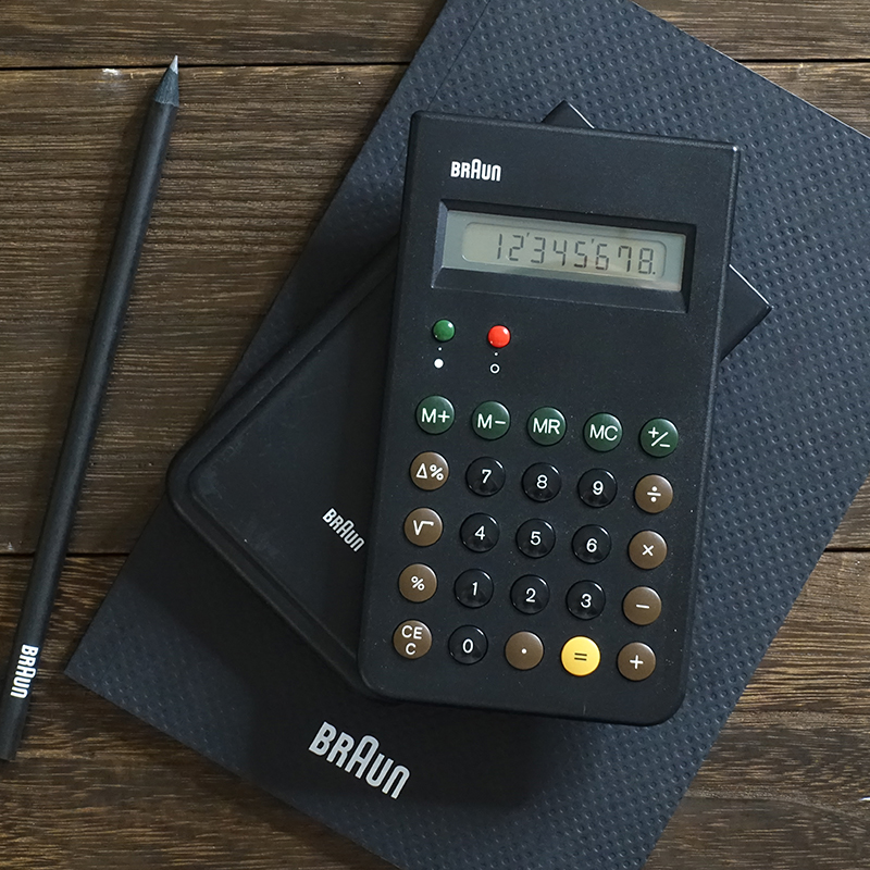 道具として使用する為の意味をもつ配色、持ち運びする時に重宝するケース、押しやすいように適度に膨らみをもたせたボタン、ディーター・ラムスが手掛けた80年代の名作「ET66」は随所にこの電卓が機能を優先したBRAUNのプロダクトである所以を感じることができます。