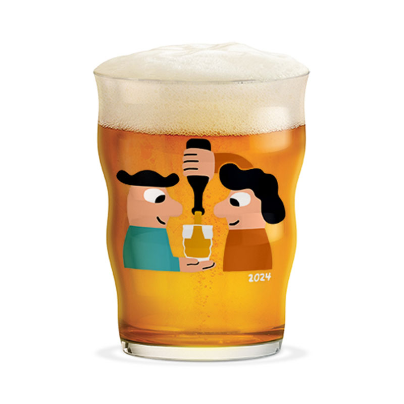ホルムガードは、デンマークで1825年に創業した伝統と歴史あるデンマーク王室御用達のガラスブランド。1900年代から高度な技術を持つ吹きガラス職人やアーティストとの協働で何世紀にも渡って高品質なグラスウェアを生み出しており、これまでも多くのビアグラスを製造してきました。ミッケラーは、2006年の登場以来、様々なスタイルやフレーバーのビールを生み出し、クラフトビールのパイオニアとしてデンマークのみならず世界中のビールファンを魅了しています。また、アメリカのアーティスト、キース・ショア氏によるキュートで遊び心溢れるビジュアルも人気が高い理由です。パイントビールグラスは、ラガーとピルスナー用に特別に設計されています。グラスはわずかに開いた円筒形で、クラシックなパブグラスによく似ています。パイントグラスは400 ml 入り、泡を入れるスペースもたっぷりあります。パブグラスのように、ミッケラーパイントは積み重ねられるように設計されているので、グラスを使用していないときは戸棚や棚のスペースを節約できます。パイントビアグラスの2024特別エディションは、ヘンリーとサリーがビールを笑顔で注ぎながら、ホルムガードとミッケラーのコラボレーションをお祝いしています。ビール愛好家へはもちろん、クリスマスプレゼントや冬の贈り物にも最適です。