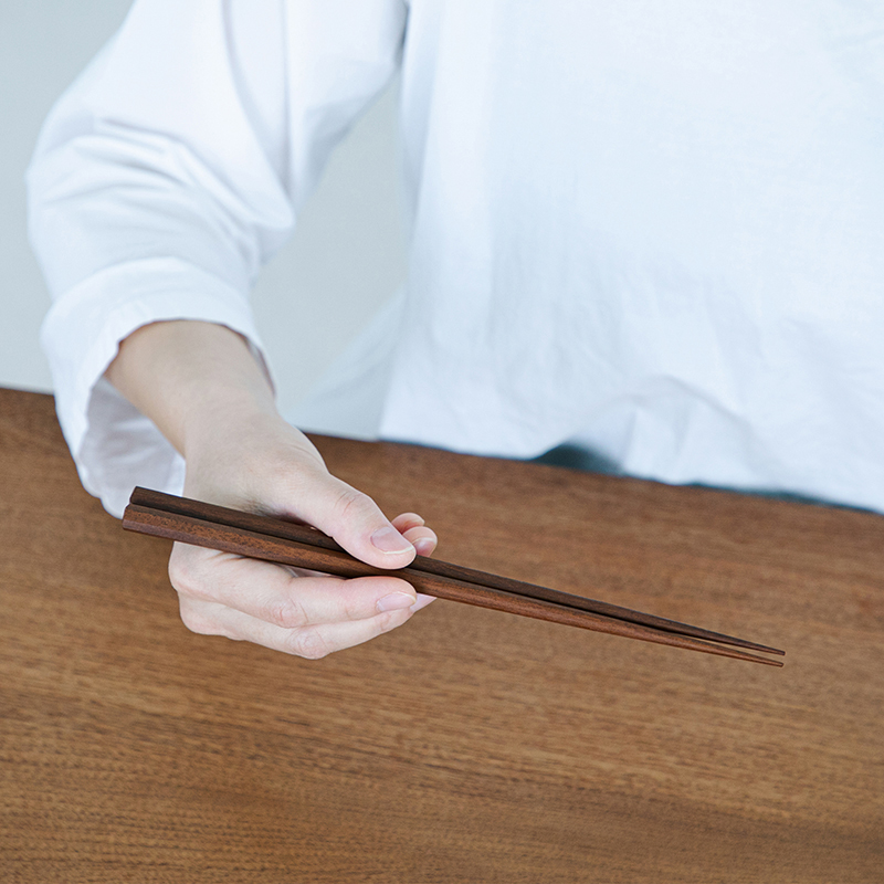・箸表面のカサつきが気になる場合は、えごま油や亜麻仁油など乾性の油を擦り込んでいただくことで元の風合いが戻ります程よい太さの八角形で持ちやすく、先端に向かって丸みを持たせることで口当たりの良さを実現した箸です。先端は細く仕上げており、食材をつまみやすい形状になっています。