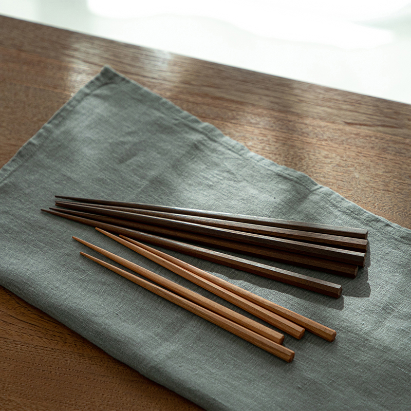 ・箸表面のカサつきが気になる場合は、えごま油や亜麻仁油など乾性の油を擦り込んでいただくことで元の風合いが戻ります