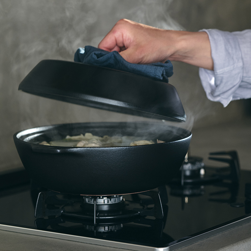 ガスレンジでの直火調理はもちろん、電子レンジ、オーブンで使える耐熱陶器製のかこみ鍋。